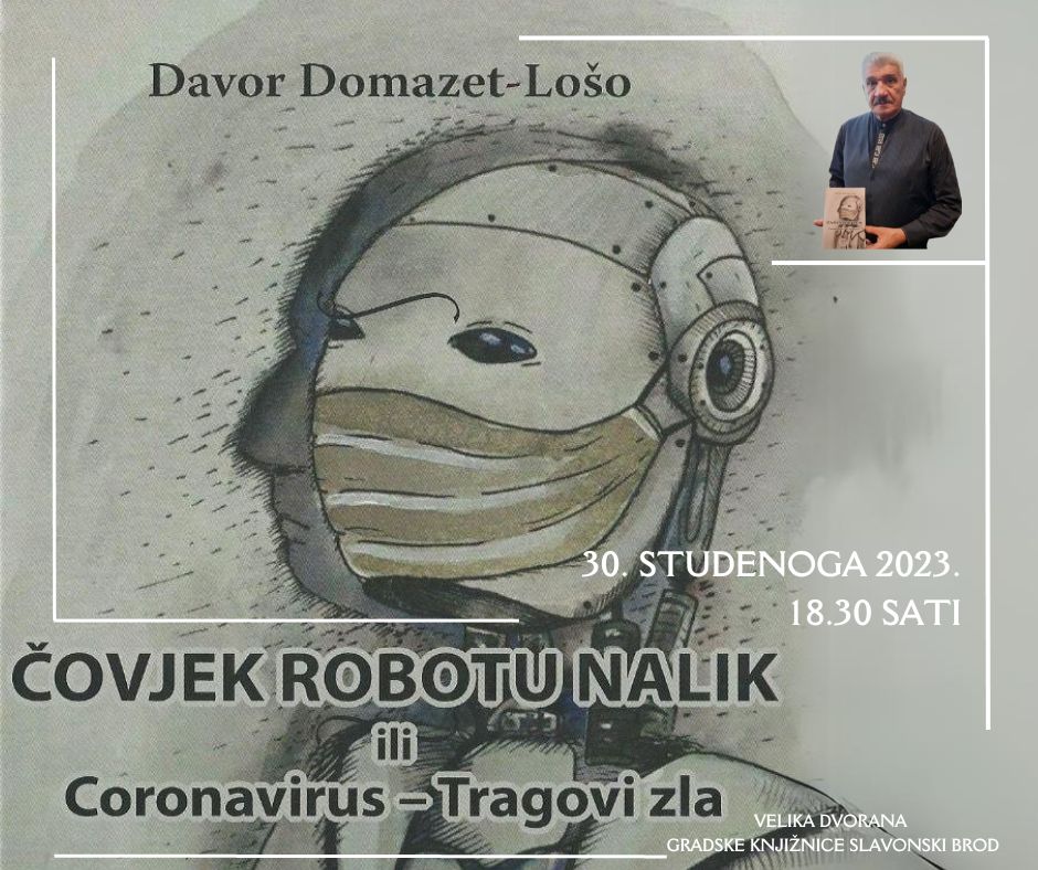 Pozivamo vas u četvrtak, 30. studenoga 2023. godine, na predstavljanje/ predavanje o knjizi ČOVJEK ROBOTU NALIK admirala Davora Domazeta-Loše.