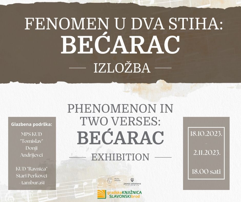 pozivamo vas u srijedu, 18. listopada 2023. godine na otvorenje izložbe „FENOMEN U DVA STIHA: BEĆARAC“.