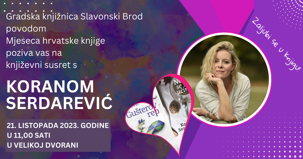 Povodom Mjeseca hrvatske knjige pozivamo vas na književni susret s Koranom Serdarević.