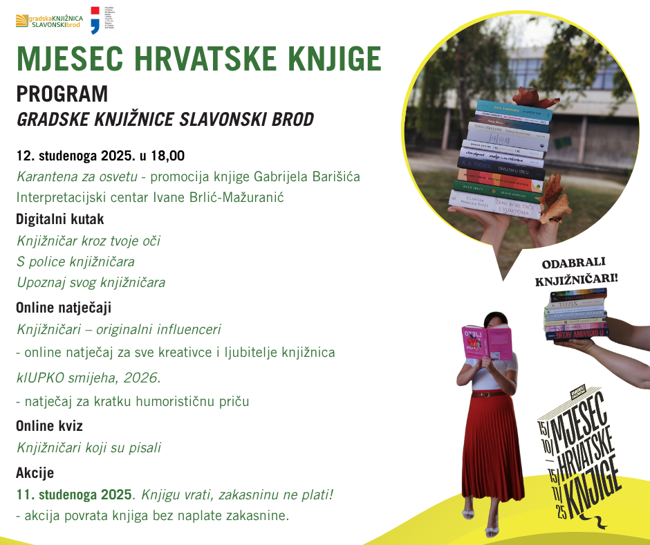U sklopu Mjeseca hrvatske knjige 2025. s temom „Odabrali knjižničari“ donosimo vam program Knjižnice za naredni period!