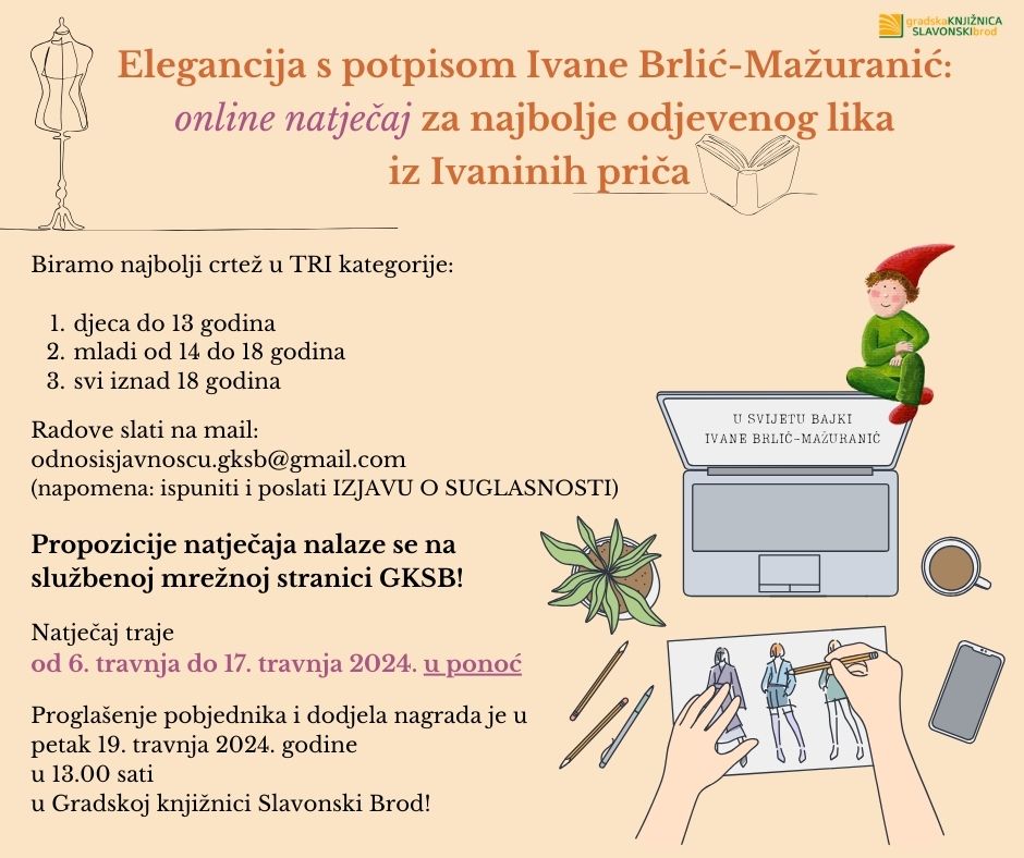Molimo vas da u naslovu maila navedete: “Za natječaj Elegancija s potpisom Ivane Brlić-Mažuranić”.
